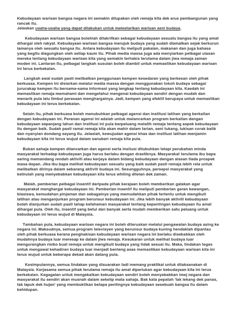 Karangan Faedah Mengekalkan Warisan Budaya Malaysia Pdf